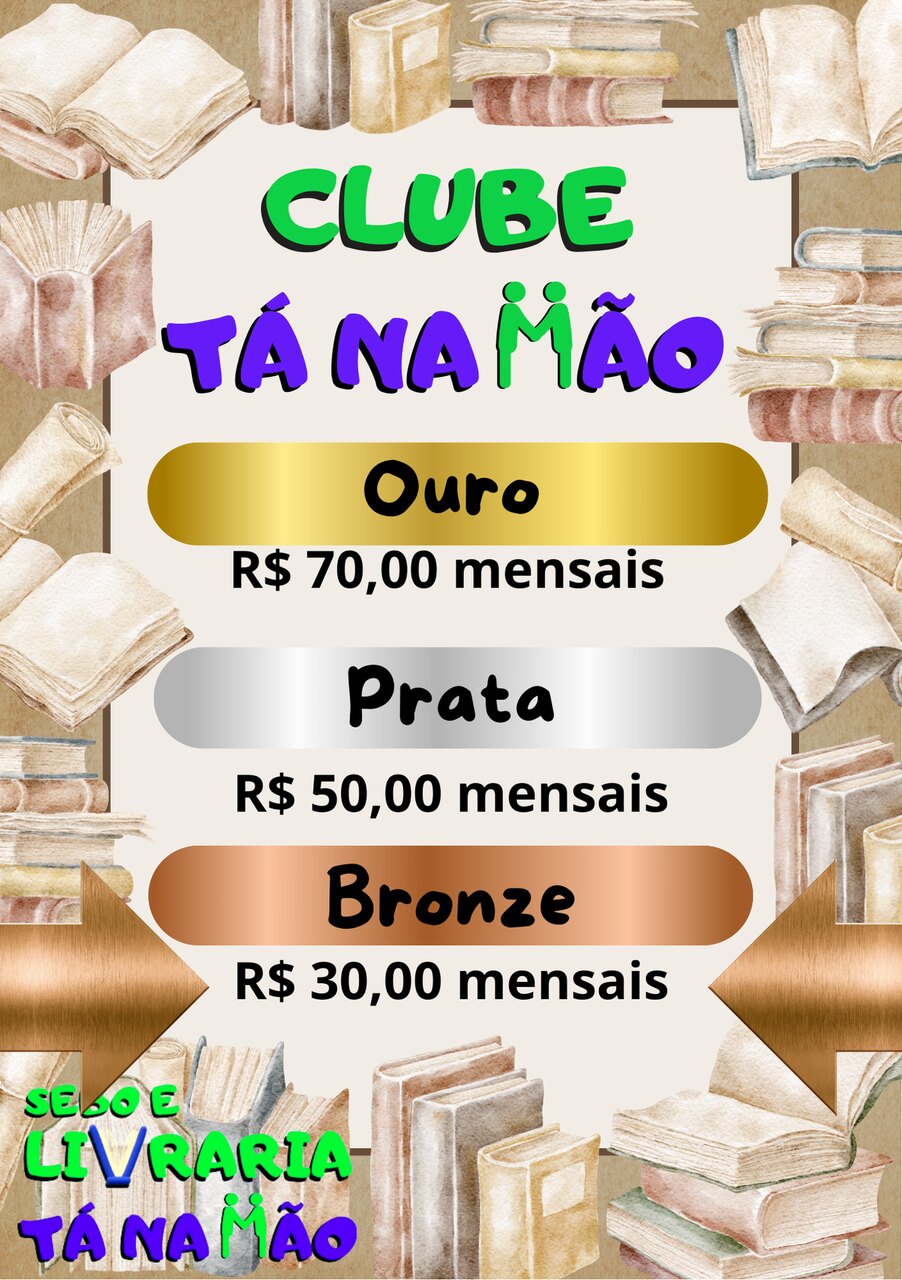 Assinando o Clube Tá na Mão – Nível Bronze*, por R$ 30,00 mensais**, você recebe um vale compras no mesmo valor todo mês*** para gastar como quiser em nosso site. (Você escolhe seus livros e, ainda, se quer incluir o frete no valor ou não).